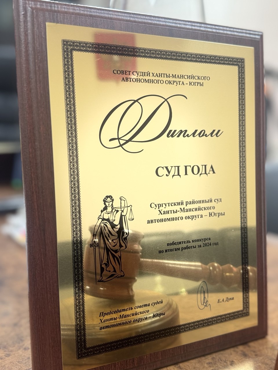 На заседании Совета судей Ханты-Мансийского автономного округа-Югры состоялось награждение победителей конкурса «Суд года» и «Судья года». По итогам работы за 2024 года среди районных и городских судов общей юрисдикции, звание «Суд года» в группе 7 и более судебных составов присвоено Сургутскому районному суду. В номинации «Судья года» в группе 7 и более судебных составов из числа судей, рассматривающих уголовные дела, победителем признан Сергей Евгеньевич Мельников, судья Сургутского районного суда ХМАО-Югры. ![]() Пресс-релиз подготовила консультант суда Наталья Викторовна Дедюхина |